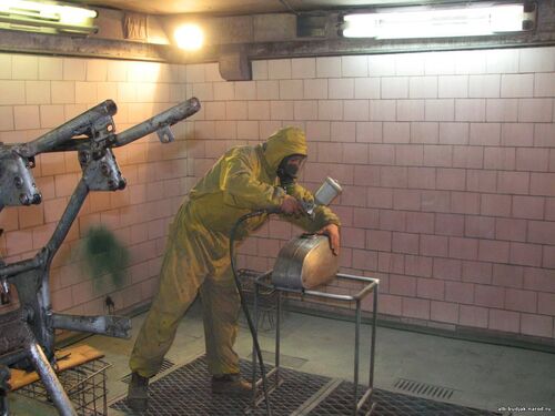 Суть поставленной задачи была в том, чтобы окрасить с постепенным переходом от одного цвета к другому. В фотошопе этот приём называется словом градиент. Но одно дело фотошоп, а совсем другое исполнить в реале нитрокраской на металле, причём уже не нажмёшь кнопку "вернуться к прежней операции".